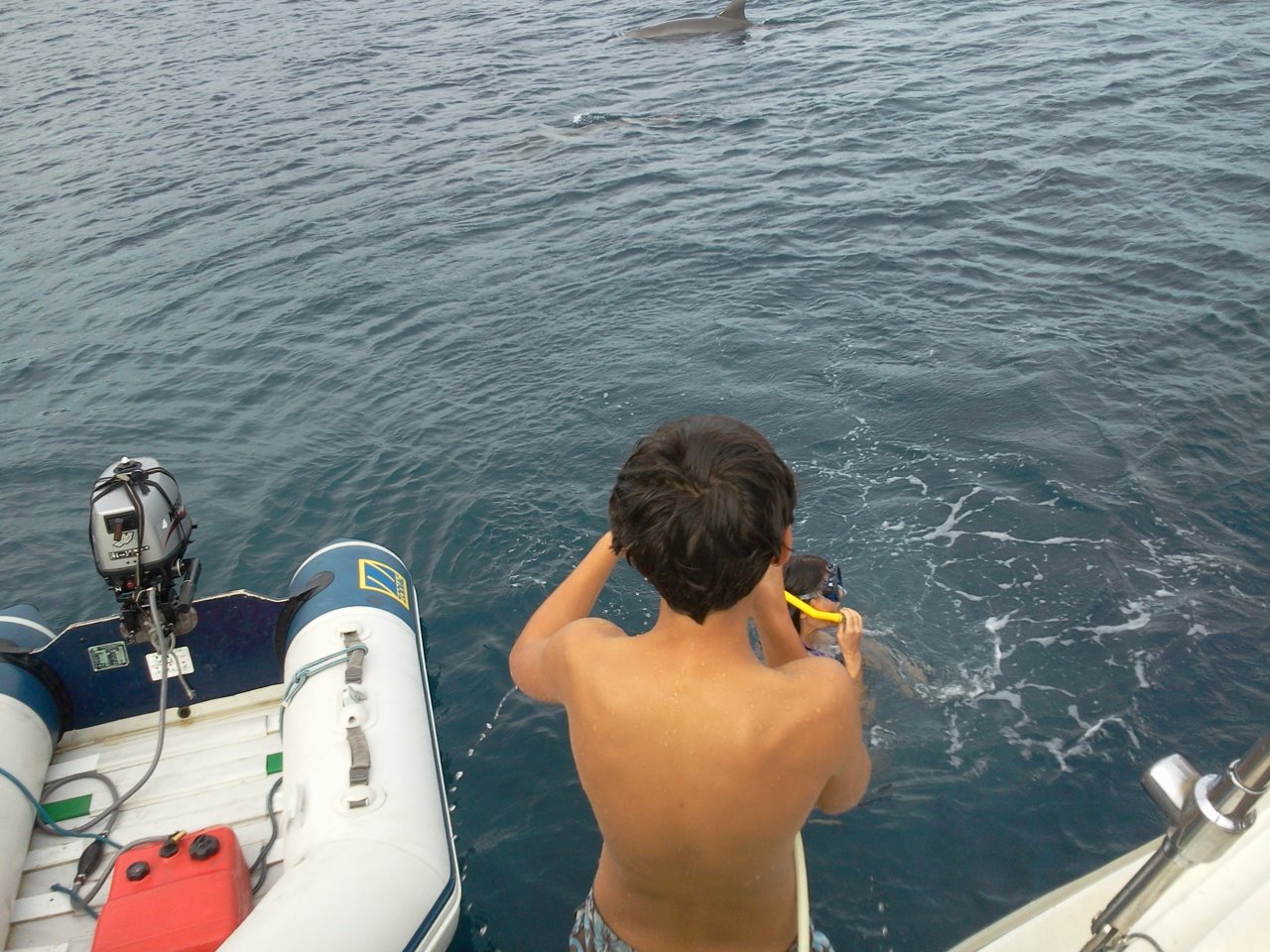 Tous les bateaux ancrés devant la plage du Pain de Sucre ou amarrés sur coffre devant le Bourg reçoivent la visite de ses deux dauphins au cours de l'escale et rendent ainsi le séjour trés agréable.
