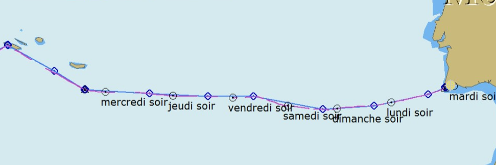 Après 4 jours de repos et visite de l’île, Ocambo repart le mercredi 24 juin, vers l’Est pour une étape de plus de 600 miles.