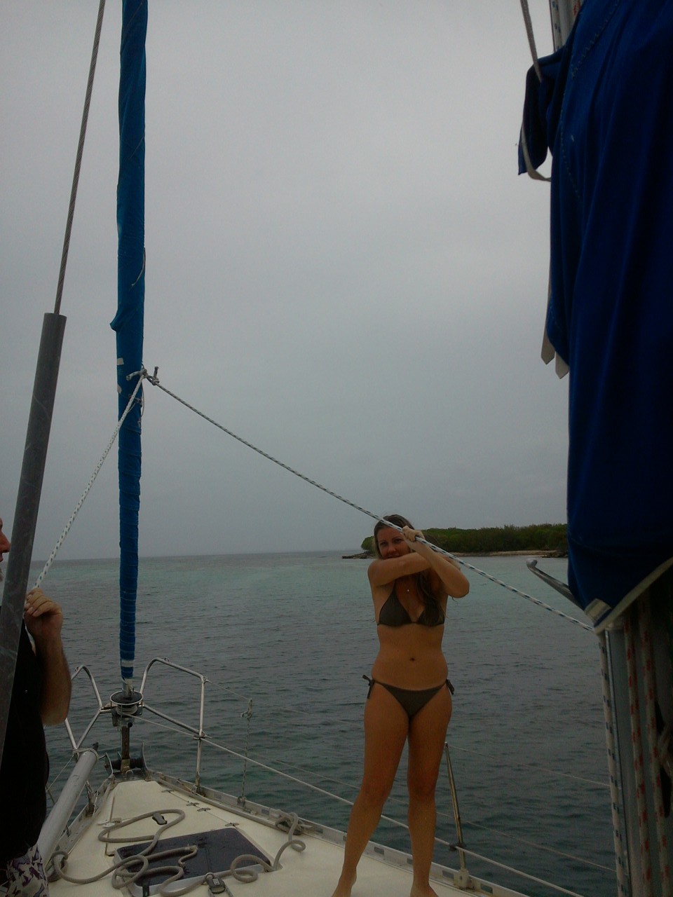 Comme le temps est ensoleillé tout les équipiers et équipières se baignent avant de bronzer au soleil.