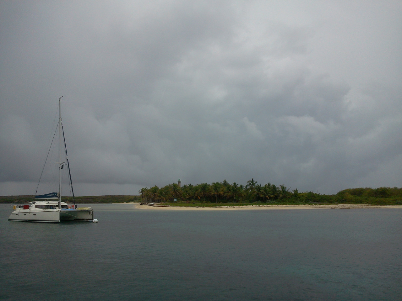 En passant devant l'îlet Gosier il pleut toujours, et tout les équipiers préfèrent rentrer au port et se